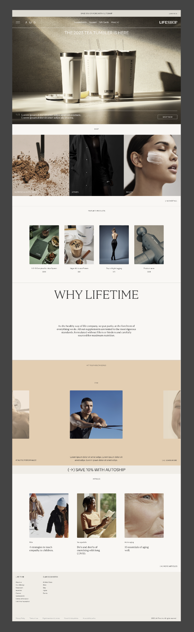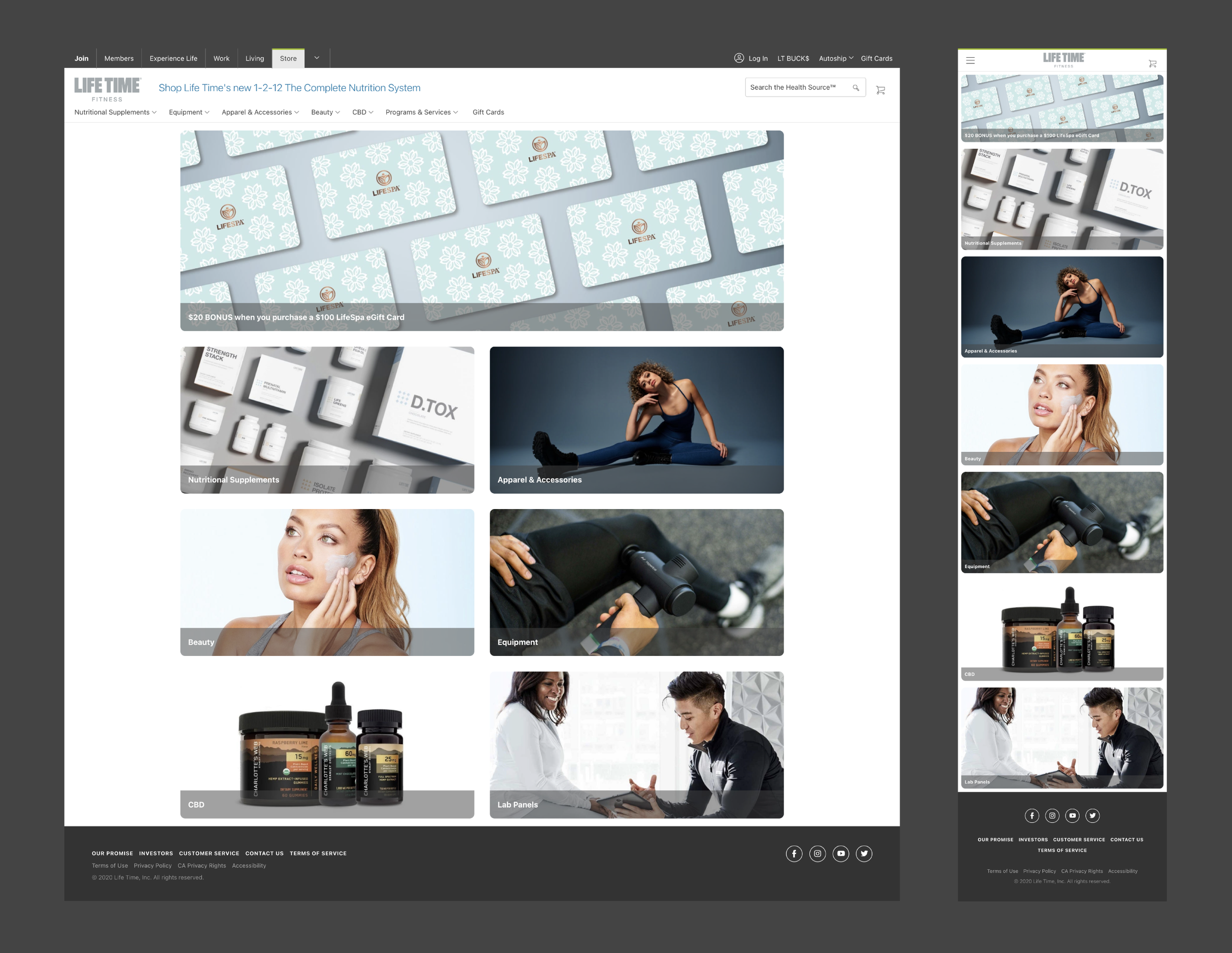 Following the pandemic, Life Time has been on a mission to reposition itself as a luxury athletic country club. Part of this mission has included a complete digital design transformation to match the premier impression through all digital touchpoints including LifeShop, Life Time’s e-commerce business division. LifeShop represents a small part of the company and therefore is often overlooked. The website had not been updated since 2019 and it shows as it falls short of usability, product findability, visual design and responsive design. The LifeShop design worked, but the evolution of the company into the luxury space calls for an evolution of its e-commerce experience as well.